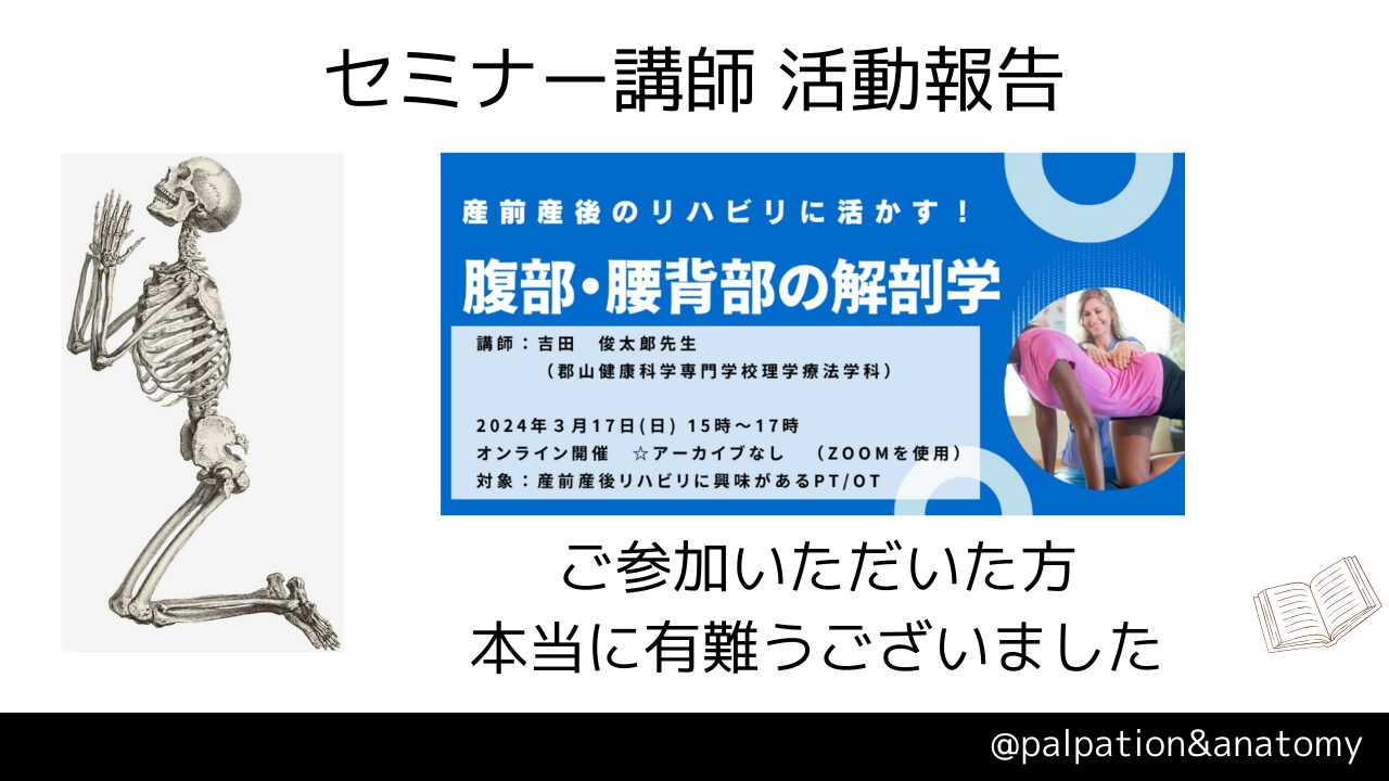「産前産後のリハビリに活かす!腹部・腰背部の解剖学」というテーマでした。